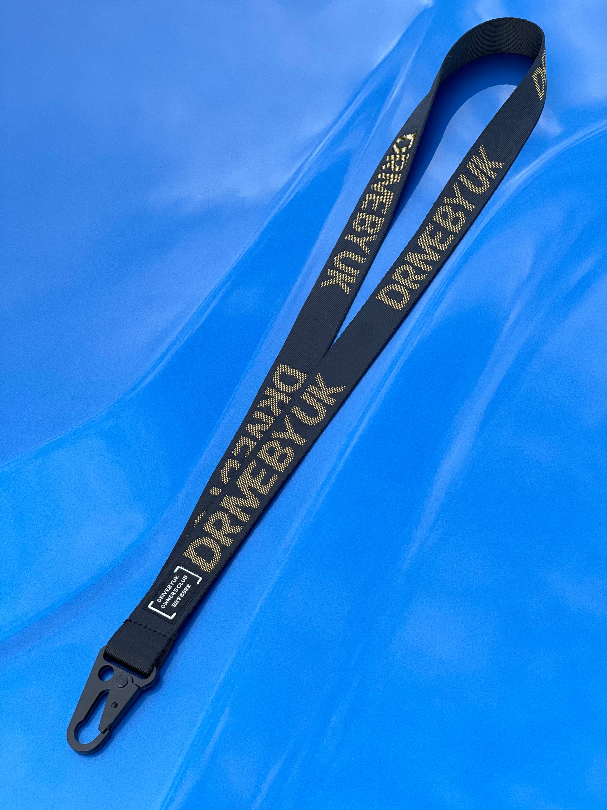 Our Owners Edition Drivebyuk lanyard with gold thread logo. Special owners club patch to celebrate our tenth lanyard.